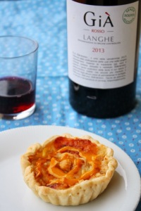 “Il vino aggiunge un sorriso all’amiciziaed una scintilla all’amore”.Lo pensava Edmondo de Amicis (ma lo pensiamo anche noi….detto in tutta sincerità). Un calice di vino, gli amici, qualche buon piatto, tante chiacchiere: ecco gli ingredienti per una serata perfetta. A casa o in enoteca. Come avrete intuito il vino è il protagonista di questo post. In particolare, un Langhe Rosso di Fontanafredda (una delle 100 cantine più belle del mondo secondo Wine Spectator, n.d.r.), situata a Serralunga d’Alba, nel cuore delle Langhe. L’8 dicembre 2013 è uscita la nuova annata di Già, in due tipologie diverse: Già Rosso (un Langhe Rosso senza solfiti aggiunti) e Già Bianco (un Marche Bianco). Entrambi i vini rientrano a pieno titolo in Vino Libero, un progetto innovativo che mira a “liberare” il vino da tutto quello che può interferire negativamente con il suo consumo (concimi chimici, diserbanti, eccessivi solfiti aggiunti…) ma anche da packaging inquinanti, dalle mode e dagli abbinamenti comuni. E qui entriamo noi nel “gioco”: abbinamento inusuale. Ci piace! Per rispettare a tutto tondo il tema del progetto abbiamo giocato non solo con il gusto ma anche con gli occhi, pensando a una tartelletta con zabaione…che sembra un dolce ma è salata! Si tratta infatti di una tortina con toma piemontese (di media stagionatura), pere e nocciole del Piemonte, arricchita da uno zabaione al vino rosso (Già Rosso, per la precisione…). Un piacevole antipasto o un secondo inusuale, in ogni caso una tartelletta sfiziosa che ben si sposa, secondo noi, a un bel bicchiere di Già Rosso, un vino semplice e “immediato”, da uve Dolcetto, Barbera e Nebbiolo. Cin!
