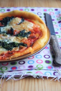Per una pizza Provola e Spinaci, come quella fotografata qui sotto, procedere come per la Margherita, aggiungendo spinaci lessati e provola napoletana a fettine a dieci minuti da fine cottura.