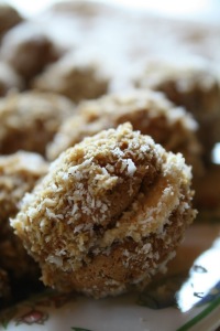 Preparare il caffè e versarlo in un piatto fondo. Zuccherare a piacere (noi ci siamo assolutamente dimenticate di zuccherarlo ma alla fine il contrasto con il dolce dell’amaretto ci è piaciuto parecchio. Dipende dai gusti). Lasciar intiepidire. In un altro piatto fondo versare la farina di cocco. Spalmare un amaretto con un cucchiaino (generoso, nel nostro caso…) di mascarpone e accoppiarlo con un altro amaretto. Bagnare gli amaretti “accoppiati” nel caffè, molto velocemente. Dopodiché rotolarli nel cocco e posizionare i pasticcini in un piatto.