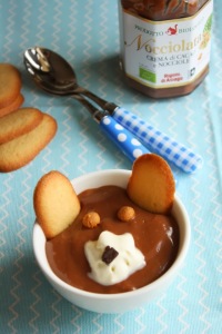 Ma quanto è bello, ogni tanto, fare merenda? Inutile dire che da bambina era il momento della giornata che preferivo in assoluto (adesso quel “primato” è occupato dalla colazione). Ma appena posso, soprattutto la domenica o nelle giornate meno incasinate, mi ritrovo a spezzare piacevolmente il pomeriggio con un dolcetto e un tè. La merenda del cuore? Ce ne sono un po’: pane, burro e zucchero (un mix di sapori incredibilmente unico), la torta di mele della nonna, le pesche con gli amaretti (ne abbiamo parlato proprio qui), latte e biscotti e il budino al cioccolato (sempre della nonna… bontà senza tempo). Proprio di recente, in uno dei miei sabati “da zia” ho avuto il piacere di fare merenda con Leo, due anni e mezzo di vivacità pura. Alla mia domanda “Cosa vuoi mangiare per merenda?”, la sua risposta è stata semplice e diretta “Cioccolato, zia Chicca!”. Così, mentre faceva il riposino, mi sono messa in moto per preparare una golosa merenda al cioccolato a tempo di record (e a prova di bimbo). Ho preparato una crema (prendendo spunto da un paio di vecchi numeri di Sale e Pepe Kids) con l’aiuto della Nocciolata Rigoni di Asiago e il risultato è stato sorprendente. E mi ha fatto fare un figurone con Leo…che ha spazzolato la crema in un bit!