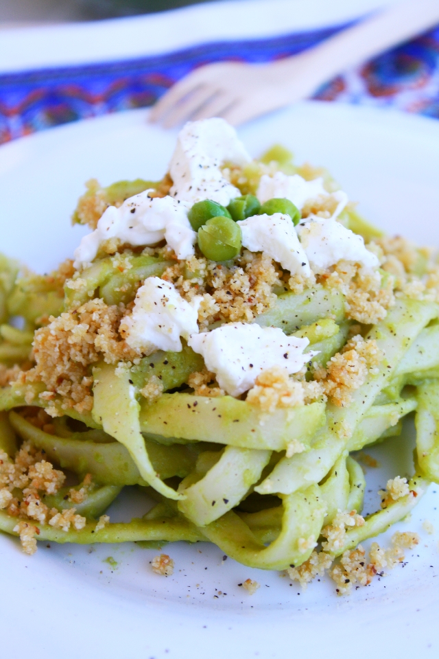 Non ho perso tempo. Ho sfruttato al volo una delle serate meno calde di questo periodo di fuoco (sì, ok, solo due gradi in meno….ma aiutano!) per preparare questa pasta che mi frullava in mente da un po’ di tempo. Con piselli, burrata e un crumble di nocciole e pangrattato. Sfiziosa, completa…un piatto unico che dà molta soddisfazione. Ho notato che ultimamente molti chef usano la burrata per dare quel quid in più ai loro piatti. E devo dire che se dosata a dovere…regala davvero una nota “piena” e vellutata alle preparazioni. Mi viene in mente un sublime piatto che prepara Matias Perdomo del Pont de Ferr, la Pluma di maiale iberico, crema di burrata e ricci di mare: da urlo! Ma anche il filetto di Sanpietro con crema di burrata assaggiato qualche mese fa dal Maestro Claudio Sadler. O la Tartare di gamberi rossi, crema di burrata, pomodorini e capperi in fiore dello chef Lorenzo Santi (La maniera di Carlo), testata la scorsa settimana. Qualcuno la burrata la mette anche nel dolce: è successo alla Festa a Vico 2012 con la Dolce tentazione proposta dallo chef Sebastiano Lombardi (Cielo – Relais La Sommità di Ostuni), con ciliegie e stracciatella di burrata. Insomma…la burrata imperversa!