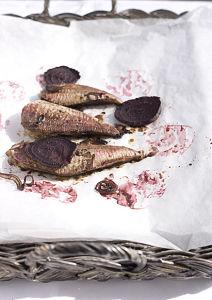 Mettete la salsa di soia, l’olio, lo zenzero grattugiato e lo scalogno tagliato sottile in un piatto e fate marinare i filetti di pesce per 1/2 ora. Adagiate poi i filetti con la marinata sulla teglia del forno ricoperta con carta forno, aggiungete le barbabietole tagliate a fette sottili e un po’ di olio e mettete in forno a 180° per 20 minuti.