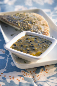 Aprite i frutti della passione e ricavate la polpa, mettetela in un pentolino con l’aceto e lo zucchero e fatela andare per qualche minuto finché non inizia ad addensarsi poi spegnete il fuoco aggiungete un po’ di sale e del pepe. Nel frattempo mettete i filetti di pesce con la parte della pelle in basso in una padella unta di olio e ben calda. Quando la pelle si sarà dorata girate il filetto e completate la cottura. Cospargete di erba cipollina e servire con la salsa ai frutti della passione.