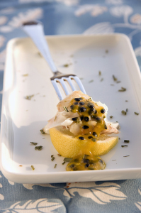 Io adoro il frutto della passione, sul pesce deve essere fantastico.