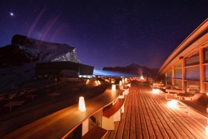 Una serata a 2.154 metri di altezza per una cena romantica tra cristalli di neve scintillanti, la suggestiva luce delle candele e la magia della notte d’inverno, proprio sotto il Gruppo del Sassolungo. Vi alletta l’idea? È la proposta del rifugio Emilio Comici: la serata inizia a Plan de Gralba, presso la stazione di Piz Sella e con la funivia si sale a quota 2.284 metri, da dove i “gatti delle nevi” portano gli ospiti al rifugio Comici. Si inizia con un aperitivo a base di prosecco, gamberetti alla griglia e calamari fritti. A seguire la “cena per due” deliziati dall’arte culinaria dello chef e del suo team, quassù, nel punto d’incontro delle passioni…