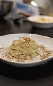 Con il prezioso supporto dello chef Guido Corvetti, abbiamo infatti preparato i nostri “Vermicelli con pere, Pannerone e briciole allo speck”, utilizzando il Pannerone di Lodi, un formaggio tipicamente lodigiano prodotto dal Caseificio Carena di Caselle Lurani (Lo), che si distingue per non essere sottoposto a nessun trattamento di salatura. Il sapore del formaggio è dolce al primo assaggio ma con una punta di amarognolo che arriva sul finale: un prodotto particolare, per palati raffinati e desiderosi di (ri)scoprire sapori vagamente retrò. Ecco la ricetta!