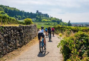 Proprio queste ultime tre valli formano la valle dei ciliegi del Soave: dal mese di aprile, girare per queste colline, magari con la bici, equivale a godersi uno spettacolo di rara bellezza.