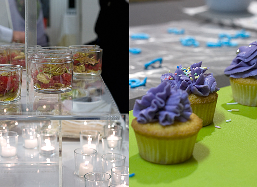 E’ pazzesco come bastino due raggi di sole per farti respirare subito aria nuova. Ci siamo lasciati alle spalle la neve (speriamo) e le giornate iniziano ad allungarsi. A Milano c’è grande fermento perché é iniziata ufficialmente la settimana della moda donna, e come ogni anno la città pullula di stranieri e c’è gran movimento di party. Ma la festa più bella per me è stata quella a cui ho partecipato lunedì sera ossia il 25° compleanno della rivista Sale&Pepe. Il compleanno è stato celebrato al 3° piano del multistore Mondadori di P.zza Duomo presso la libreria e scuola di cucina Cook&Books (un vero paradiso). Presenti alla serata ovviamente il direttore Laura Maragliano, la redazione, clienti ed amici accorsi a festeggiare tanti anni di successi. C’è stato un momento divertentissimo in cui tutti gli ospiti, capaci e non, si sono cimentati con la decorazione delle cupcakes. C’è stato un momento conviviale in cui abbiamo assaggiato alcuni piatti tratti dall’ultimo numero di marzo in edicola: ottimi i pancakes agli asparagi, le lasagnette ed i cestini di polenta. C’è stato poi il gran finale a lume di candela con l’arrivo della torta gigante per festeggiare.