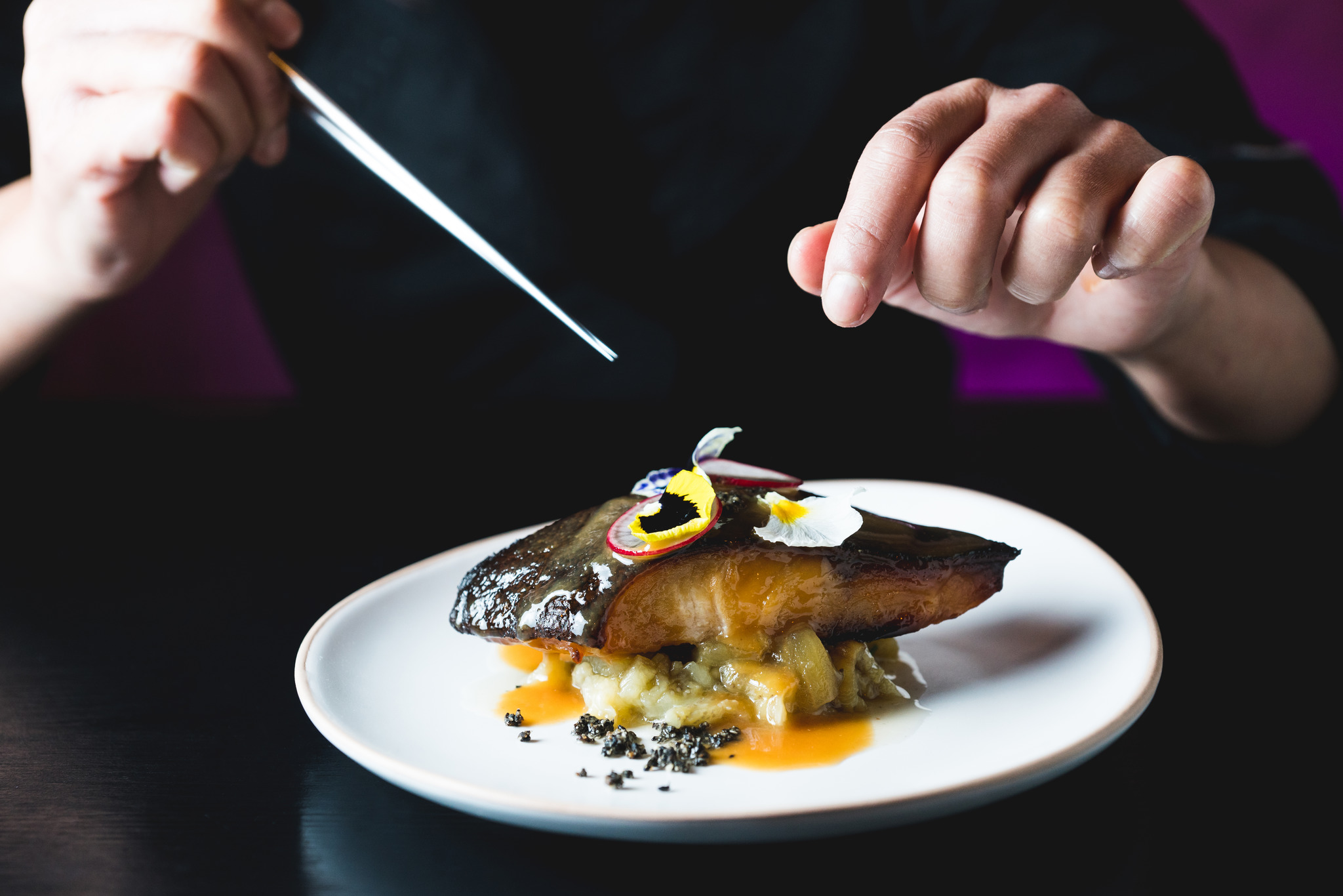 La cucina di Kanpai vuole ricreare in ogni ricetta lo spirito del Giappone più autentico attraverso una mano contemporanea e innovativa. Ovvero, piatti semplici ma frutto di tecniche e preparazioni complesse. Niente sushi, solo una voce dedicata al sashimi, unica scelta di crudo in un menu che contempla invece tante tecniche di cottura differenti: irresistibile il pollo fritto marinato allo zenzero (Karaage nanban lime), il Kakuni (lo stracotto di pancia di maiale), il Tataki (fettine di manzo leggermente scottate su una purea di topinambur), le verdure in salamoia, il Black cod (merluzzo marinato in crema di miso per cinque giorni…) e deliziose salse d’accompagnamento home made. Imperdibili, a nostro avviso, le melanzane in salsa kabayaki (Nasunagi). I dolci si sono rivelati sorprendenti, in particolare la “Cheesecake” di tofu, davvero golosa ed equilibrata. I piatti del menu variano dai 9 ai 15 euro e il nostro consiglio è ordinare cose diverse da assiaggiare e condividere, in perfetto stile “share and entertain”. Il timone della cucina, piccola ma organizzatissima, è nelle mani della tosta chef giapponese Jun (ex-chef del ristorante Gong).