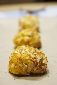 Provo una soddisfazione pazzesca quando dal nulla…salta fuori una cenetta coi fiocchi. E questa volta i fiocchi ci sono davvero: di avena, ma ci sono! Non ho avuto tempo per fare la spesa, in questi giorni frenetici, così ho radunato sul tavolo un po’ di ingredienti presi qua e là in cucina, tra cui i fiocchi di avena, un avanzo di fontina, un uovo, due patate e della zucca congelata. Beh, complice il mitico Philips AirFryer (di cui vi ho raccontato qui), la cena è stata di una sfiziosità sorprendente. Vi assicuro che, accompagnate da un fresco calice di Ribolla Gialla, queste golose palline “airfritte” mi hanno messa di buonumore…(e la serata non era di quelle semplici…!).