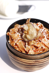 Questo è l’unico piatto che io non ho mai fatto perchè il maestro è mio marito! Si chiude in cucina e ne esce sempre una Norma da urlo, con melanzane rigorosamente fritte, leggere leggere. Che volgi d’estate con questa pasta…