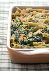 Buttate la pasta in acqua bollente salata e dopo pochi minuti buttateci anche i broccoli puliti e tagliati a cimette, dopo un po’ aggiungete il porro tagliato a rondelle e le carote grattugiate. Scolate la pasta al dente con tutte le verdure, conditela con un cucchiaio di olio e aggiungete la panna di soia aromatizzata con un pò di curry. Prendete una pirofila che vada in forno, cospargetela con un po’ di panna e il pangrattato riempitela con la pasta, cospargete con altro pangrattato e mettete in forno a 200° per 10 minuti circa.