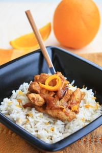 un piatto speciale nalle sua semplicità, mi ha rapito perchè adoro il riso come contorno e il pollo all’arancia so già essere favoloso! presentazione perfetta!