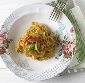 Voglia di tagliatelle fatte in casa? La pasta home made ha sempre un fascino particolare… Nel nostro libro “Le farine dimenticate” abbiamo voluto cambiare il classico look dorato delle tagliatelle utilizzando la farina di farro, che conferisce all’impasto maggior grinta e un bel color nocciola. Le tagliatelle di farro si sposano benissimo con sughi dai sapori rustici: funghi porcini, un buon ragù di carne o un condimento più insolito a base di salsiccia e castagne. E sono perfette con un semplice sugo a base di pomodoro e foglioline di basilico fresco…Buone tagliatelle di farro a tutti!