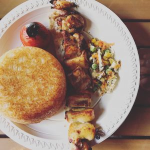 I piatti di carne vengono sempre accompagnati da riso e verdure.